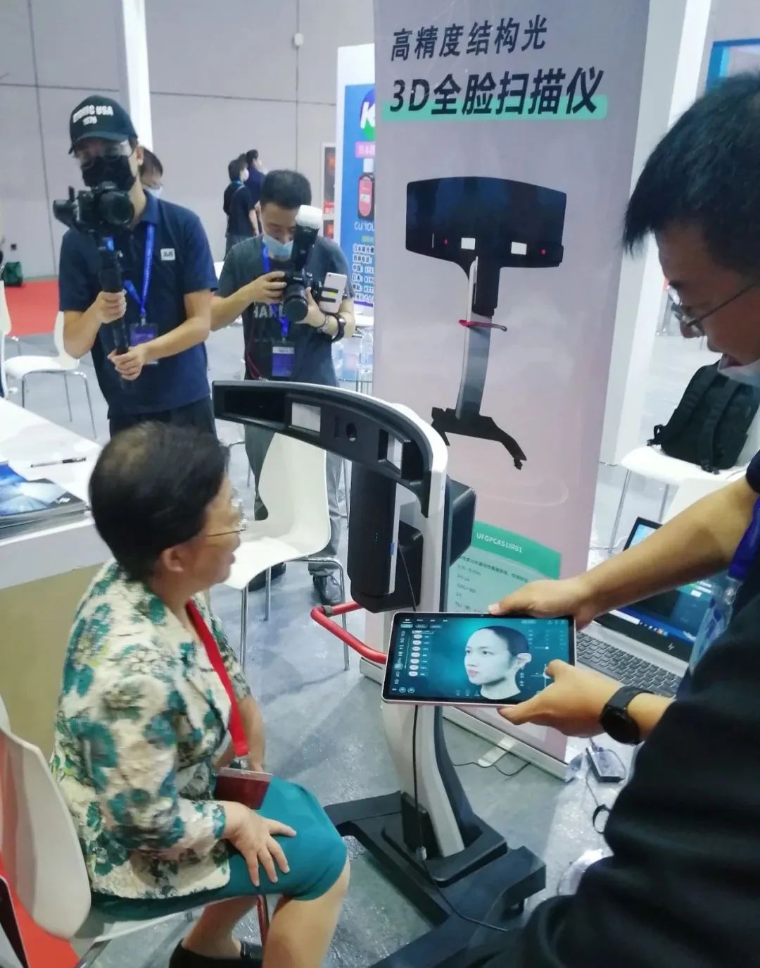 小優(yōu)科技受邀參加2021中日韓健康與美麗產(chǎn)業(yè)博覽會,在本次博覽會上小優(yōu)科技展出最新高精度3D全臉掃描儀,通過三維重建技術(shù)還原人臉真實三維信息,進而用量化美學(xué)指標(biāo)對人臉外觀缺陷進行準(zhǔn)確判斷,設(shè)計個性化操作模式,模擬最佳整形效果,讓現(xiàn)場觀眾親身體驗高精度3D人臉數(shù)據(jù)給醫(yī)美行業(yè)帶來的顛覆性。